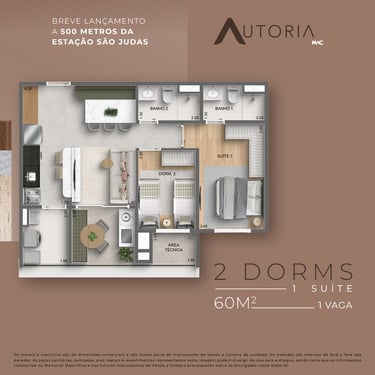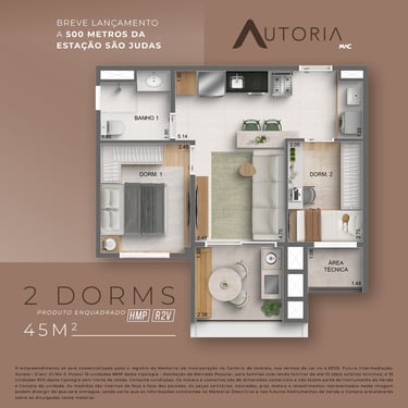1 e 2 dorms/ habitação de Interesse Social (HIS)