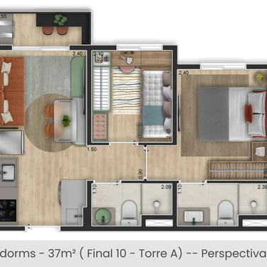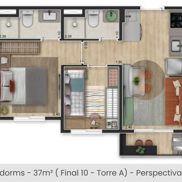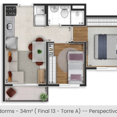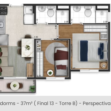 1 e 2 dorms/ habitação de Interesse Social (HIS)