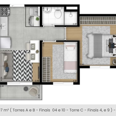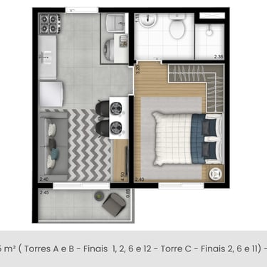 1 e 2 dorms/ habitação de Interesse Social (HIS)