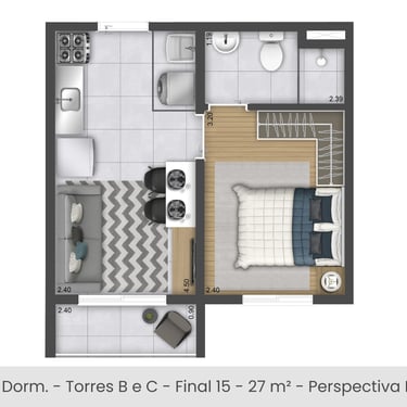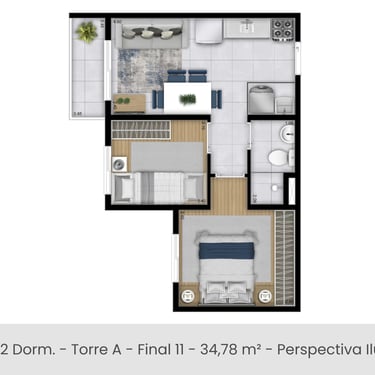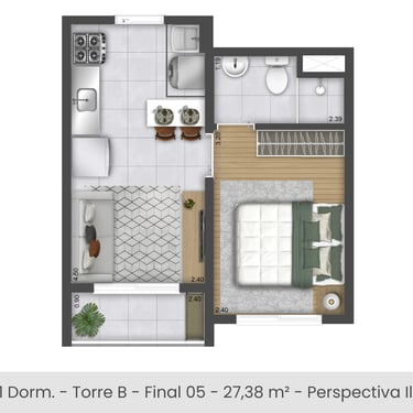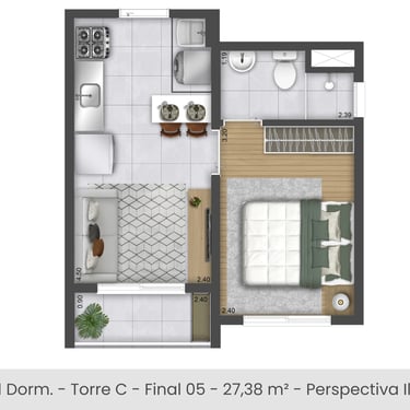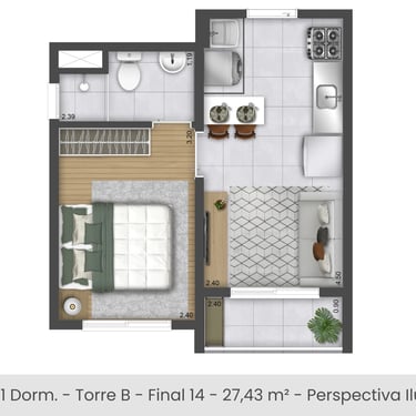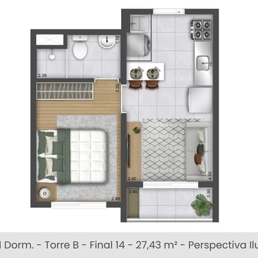 1 e 2 dorms/ habitação de Interesse Social (HIS)